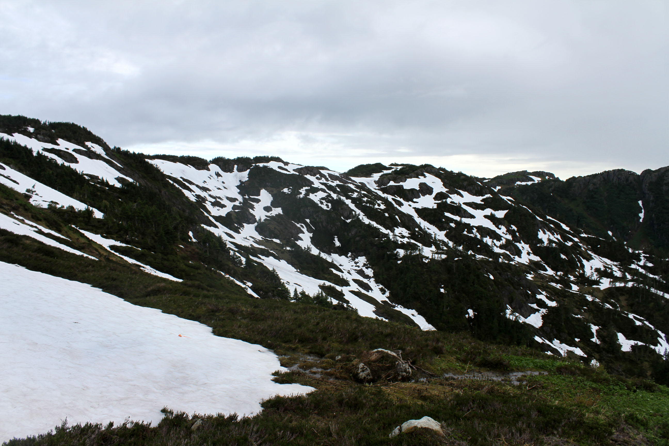 The last time I was up Eaglecrest, the dogs and I were defend by thunder, which was unfortunate and cut our hike short. But this time we were back to normal SE AK weather! The clouds were high, and the road was dry. Just the way I like it!