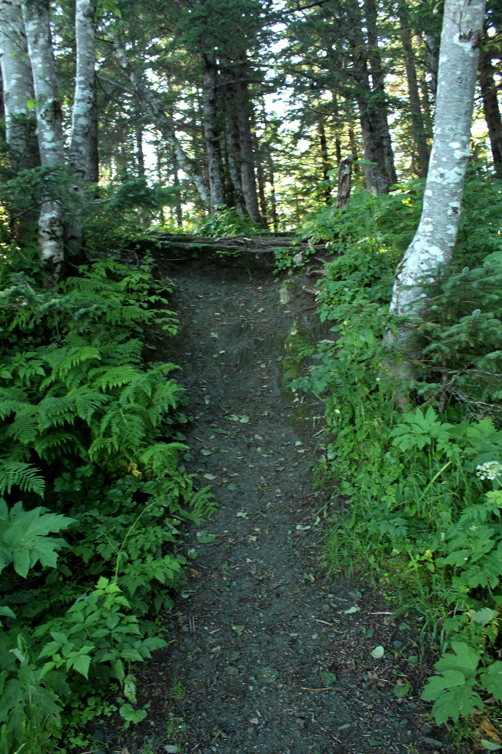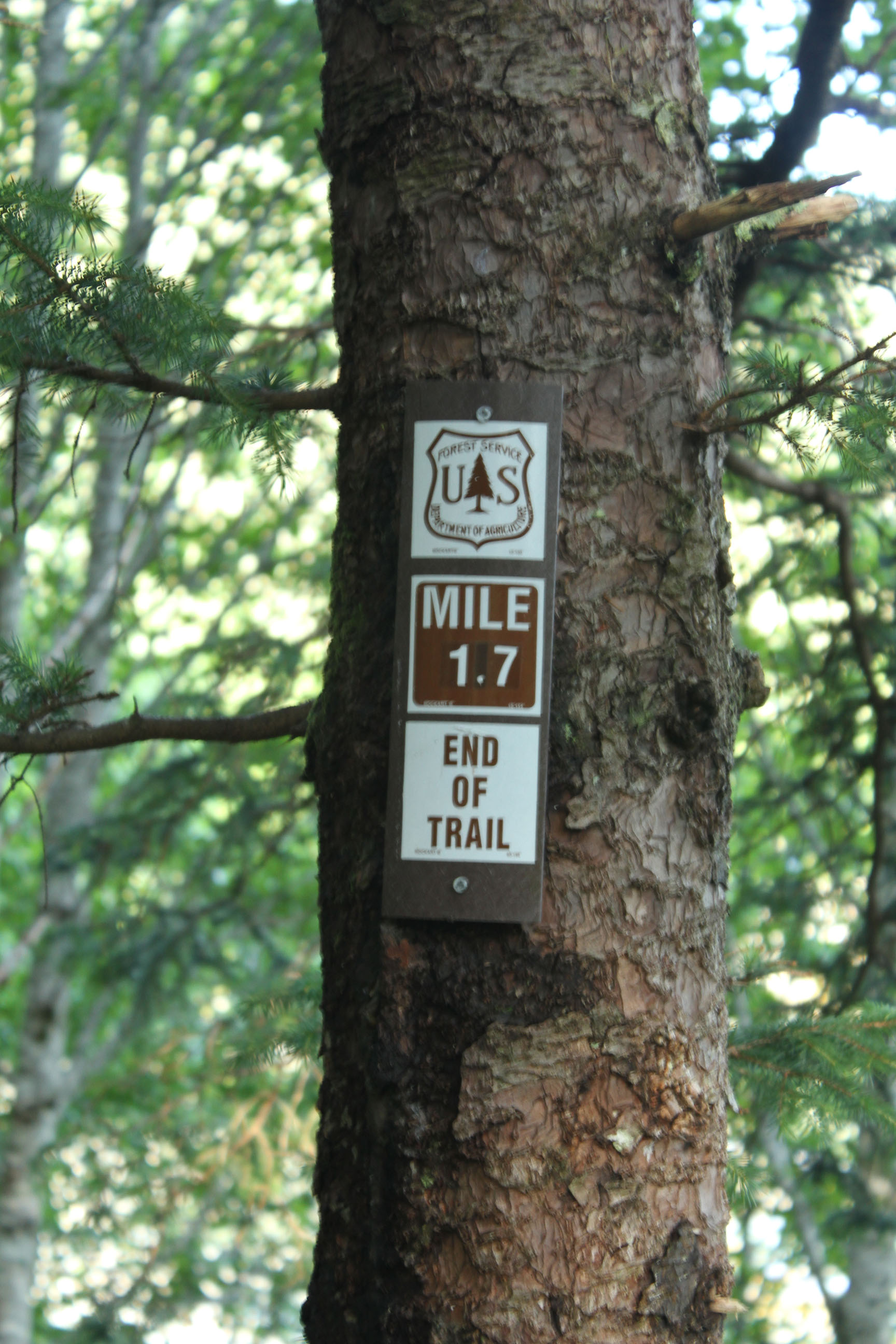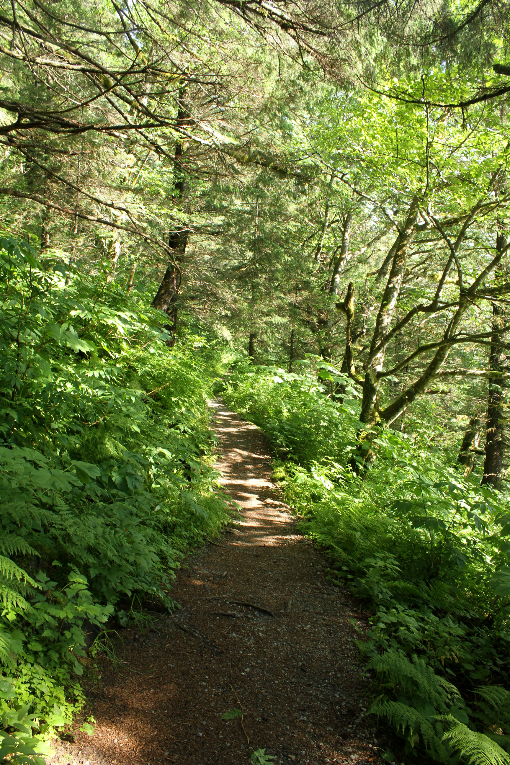 The trail was pretty dry. There were only a few spots where it was muddy, but if you are careful to walk on the rocks, you don’t get your feet wet. It was nice to see the sun, and the dappled light was beautiful and an appreciated break from the gray rain. We only saw one other hiker along the trail, and one biker when we got to the end. I don’t think she biked very far, as the trail isn’t really good for that.