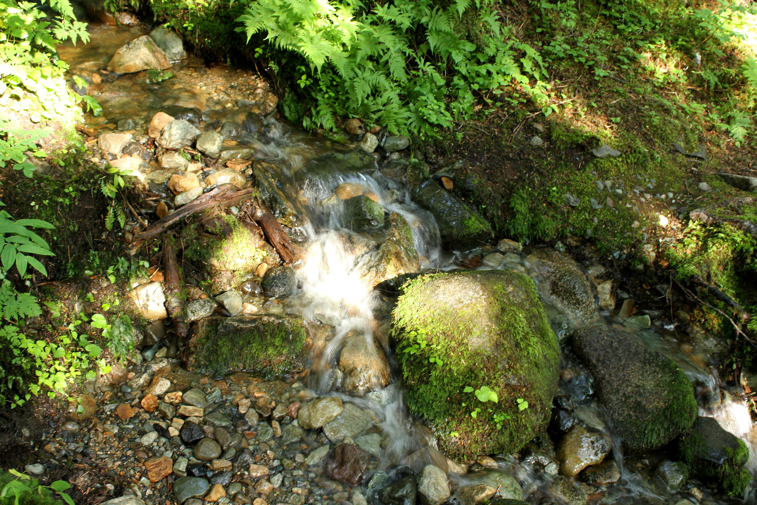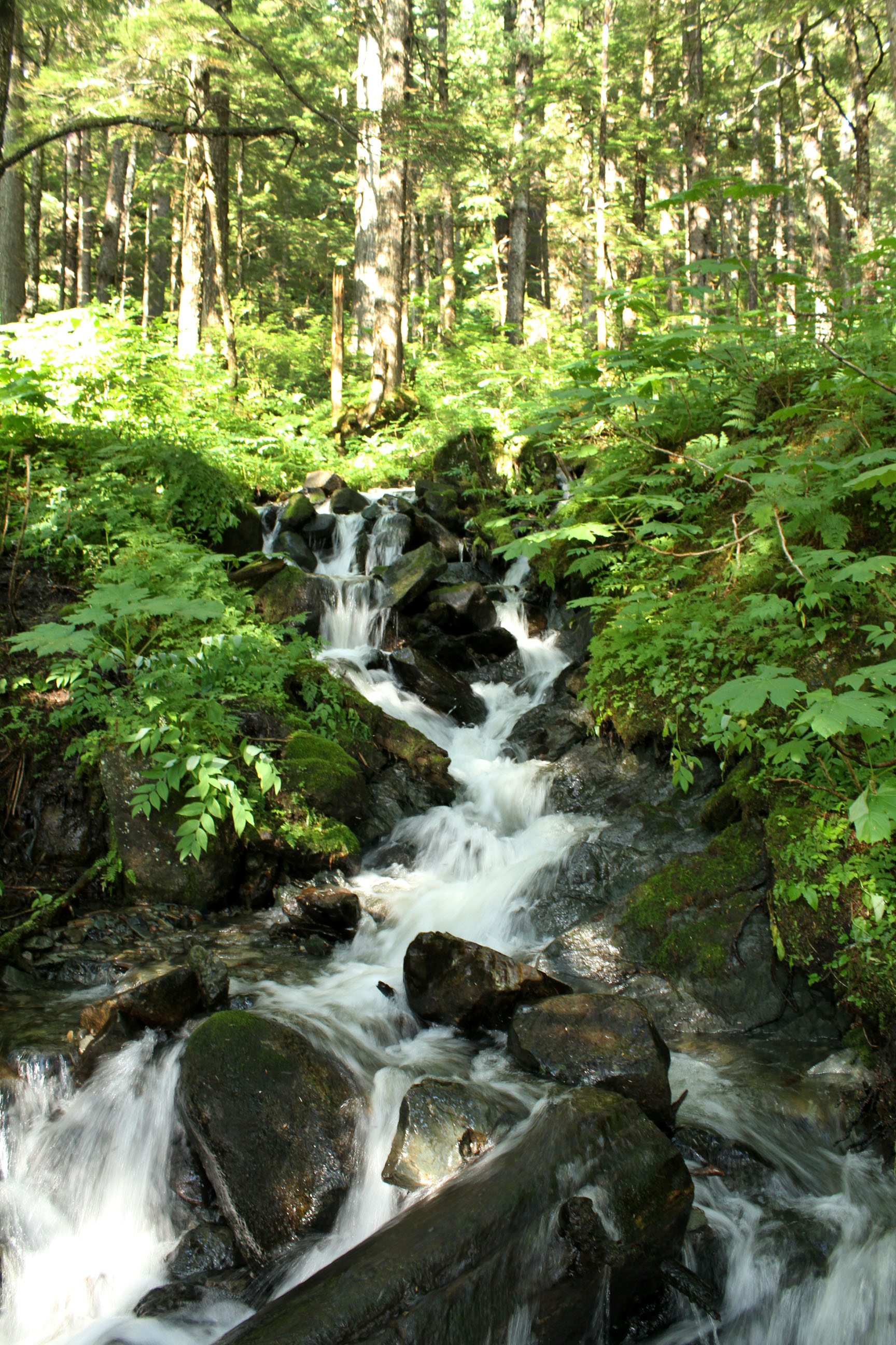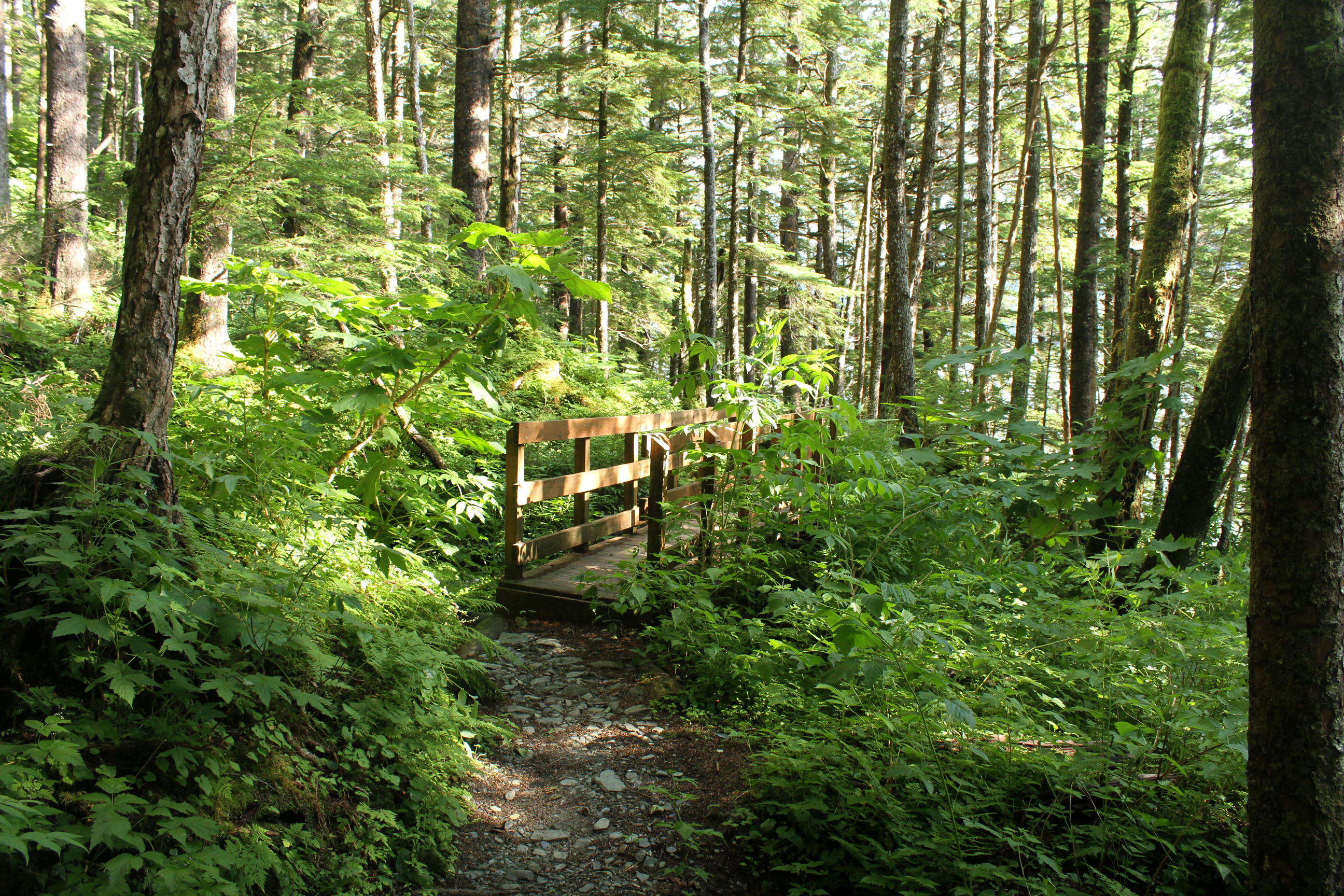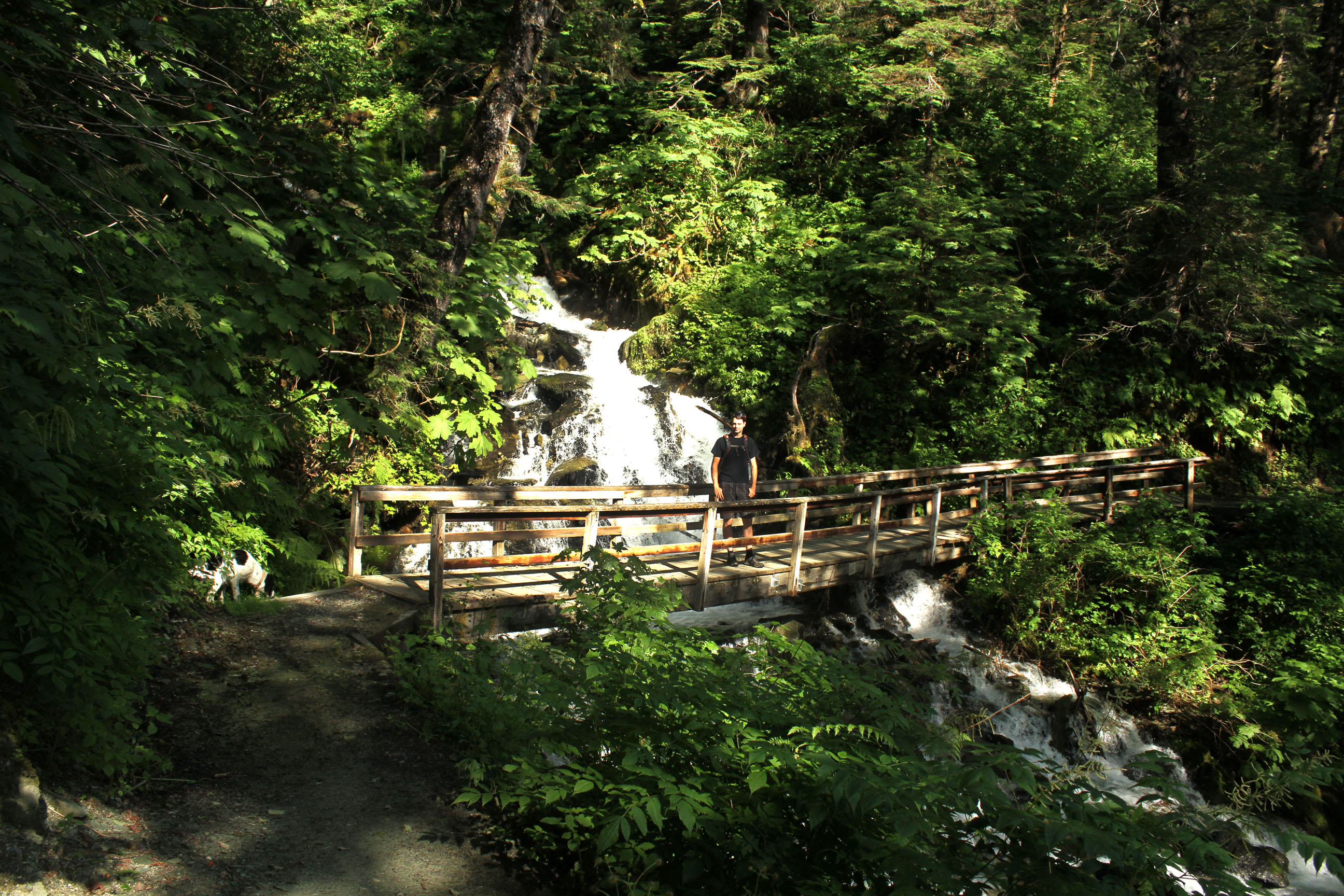 The trail was pretty dry. There were only a few spots where it was muddy, but if you are careful to walk on the rocks, you don’t get your feet wet. It was nice to see the sun, and the dappled light was beautiful and an appreciated break from the gray rain. We only saw one other hiker along the trail, and one biker when we got to the end. I don’t think she biked very far, as the trail isn’t really good for that.