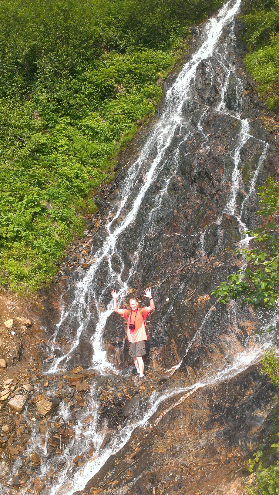 The trail is about a foot wide, with mountain on one side, and a sharp drop off on the other. We waited until it hadn’t rained for a few days before going, because the trail is mostly a dirt path. It’s a nice, well maintained dirt path, probably one of the nicest in Juneau, but it can still be slippery when wet.