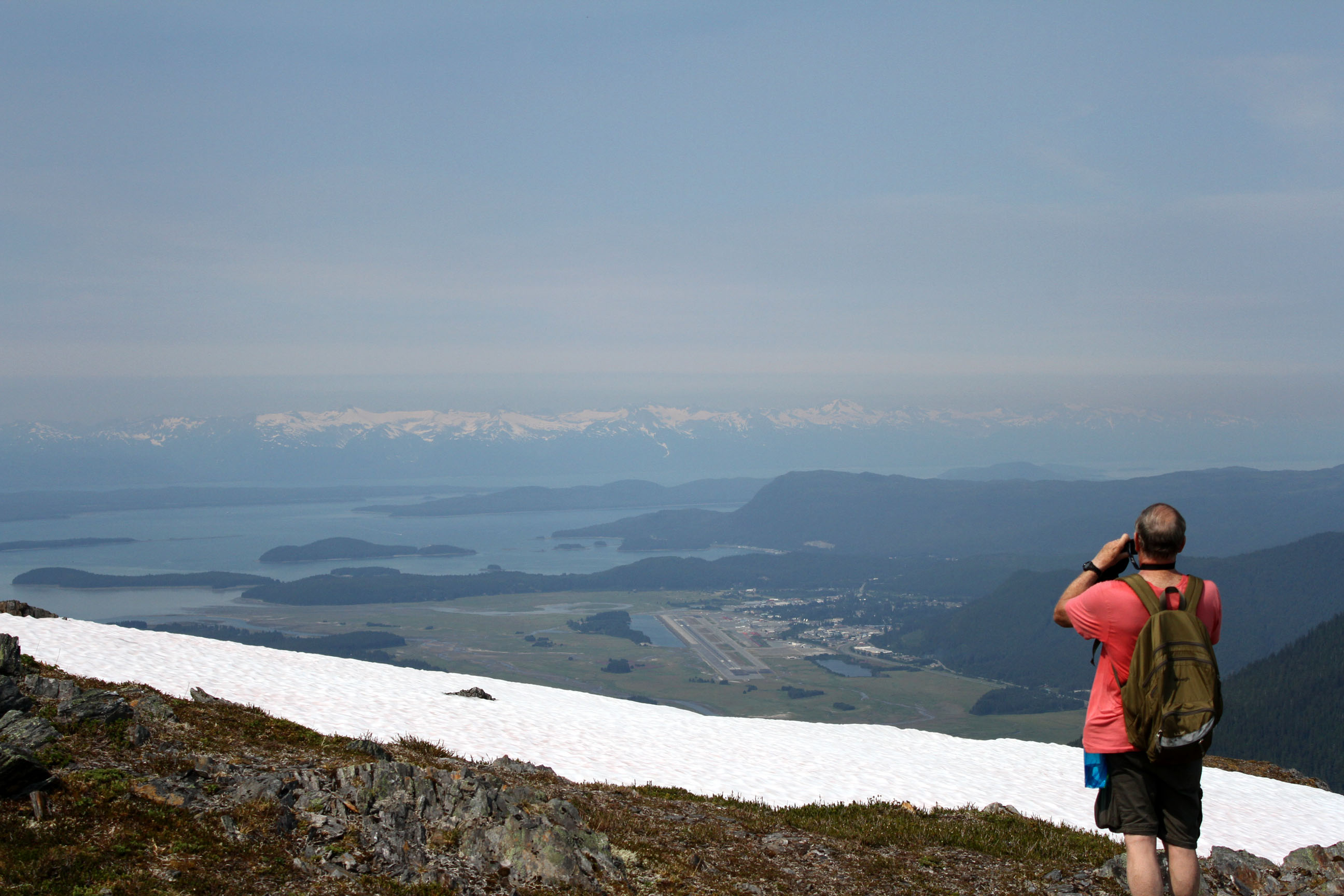 Looking at the airport and Auke Bay. It was smoky because of the fires in Canada. On a clear day, we would have been able to see farther.