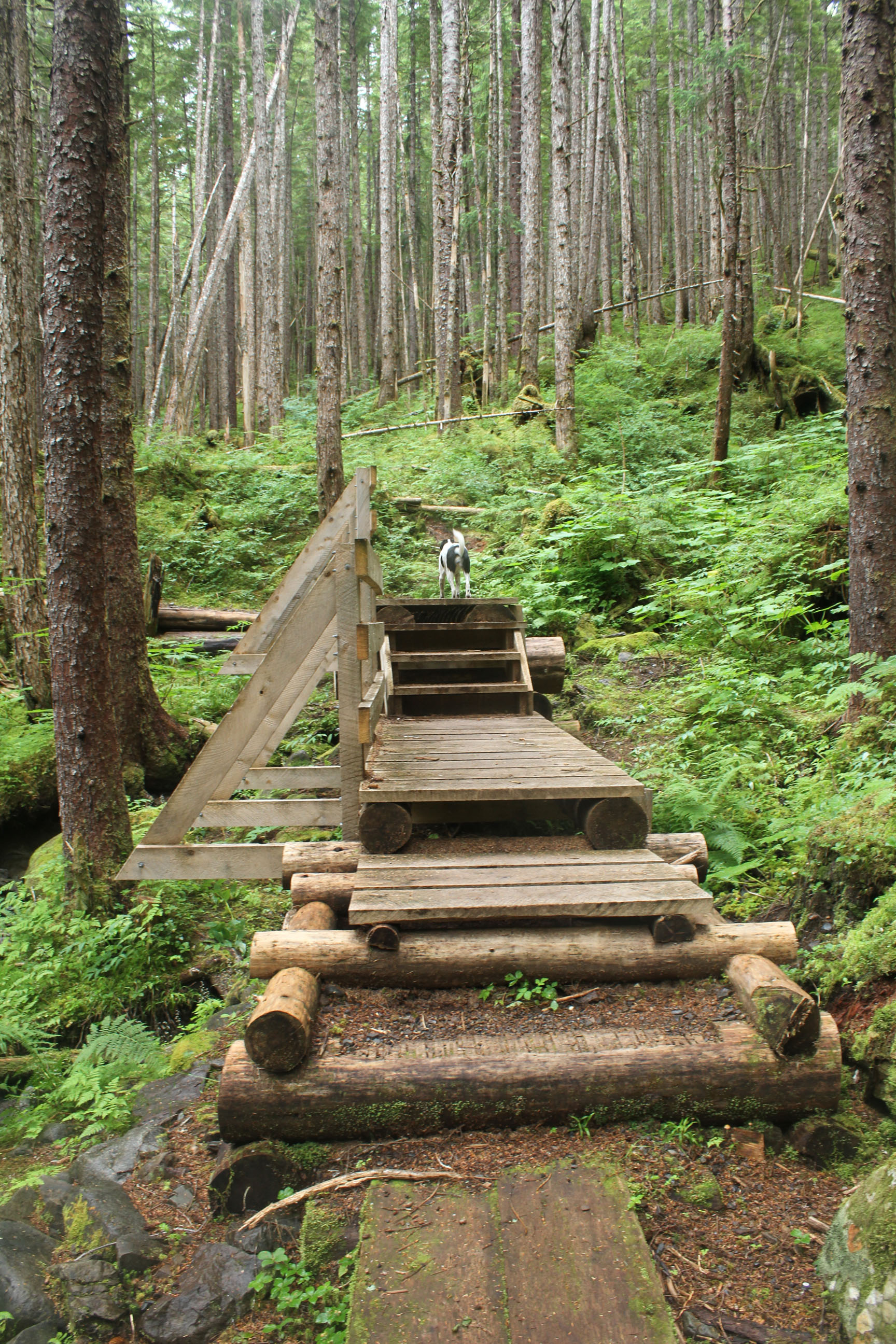 Kiska ran around this one in the winter. The snow gets built up a lot and it was a pretty skinny trail, so she ran down and around.