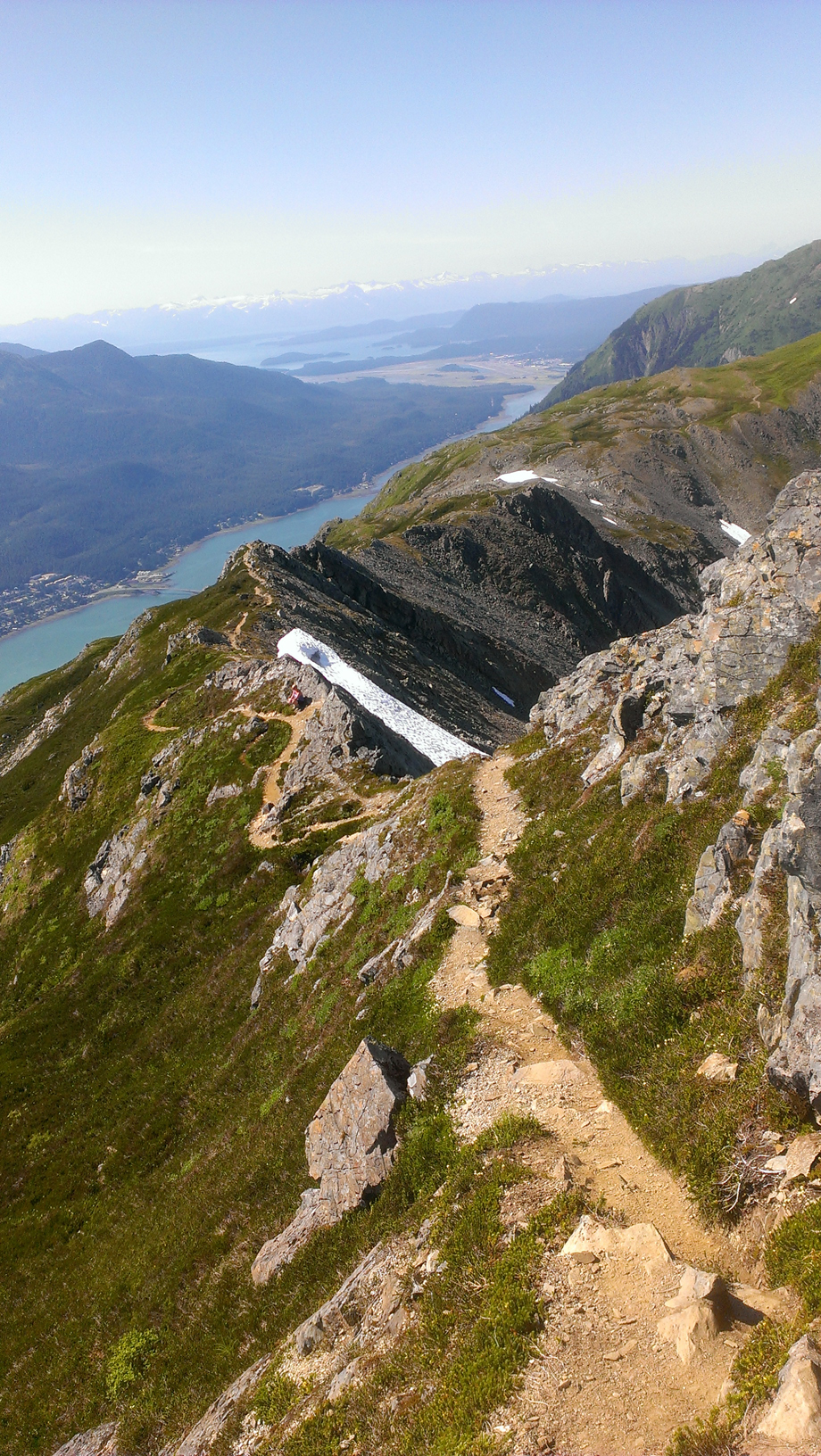 As you go up, you can clearly see (hard to see in the phone taken picture) the path on Mt. Juneau, which has been improved this and last summer quite a bit.