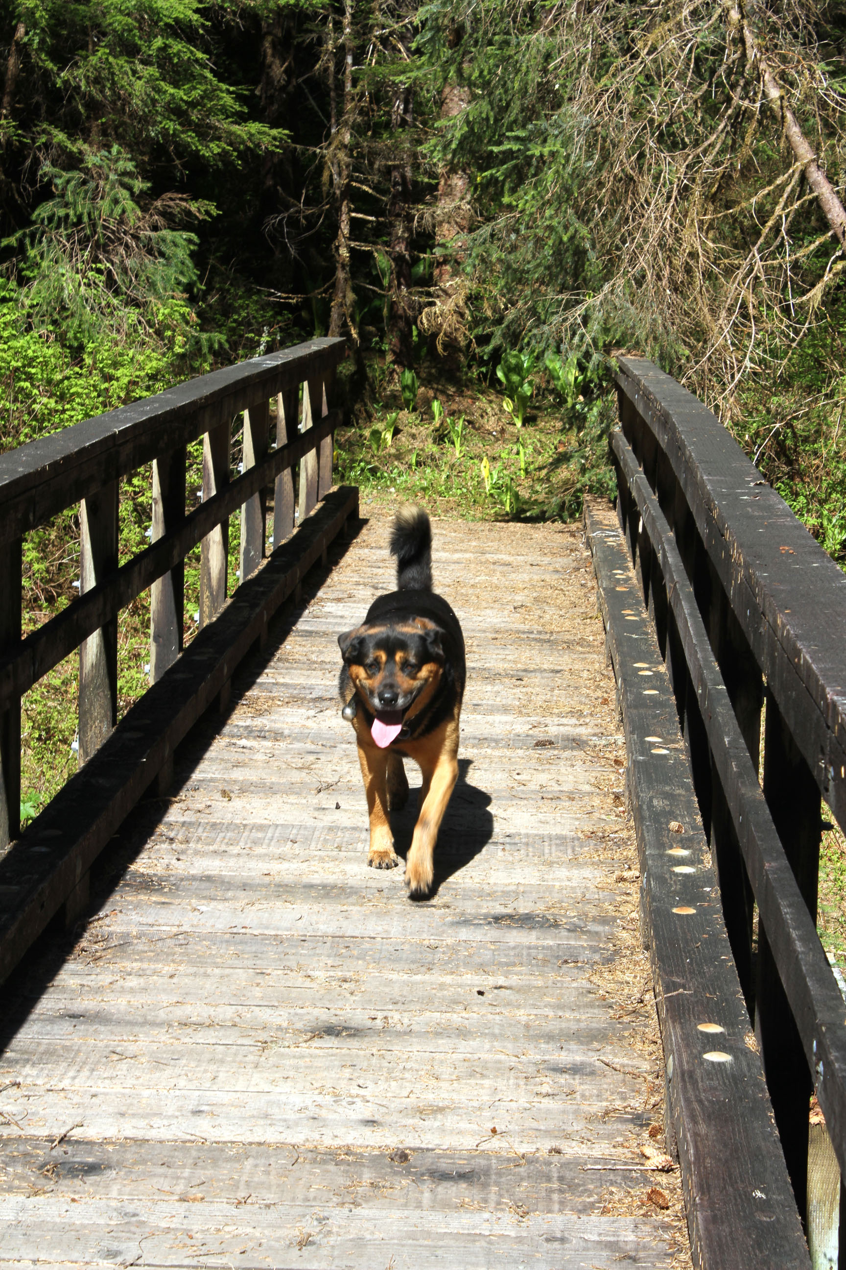 When we found a good place to cross back to the trail, we were ready for the cold water and luckily Kiska was wearing her doggy backpack that Aunt Annie gave her, so she had a handle we could hold onto so she didn’t get swept down river. Compared to Bruiser and Teddy, she is pretty short and doesn’t weigh much.