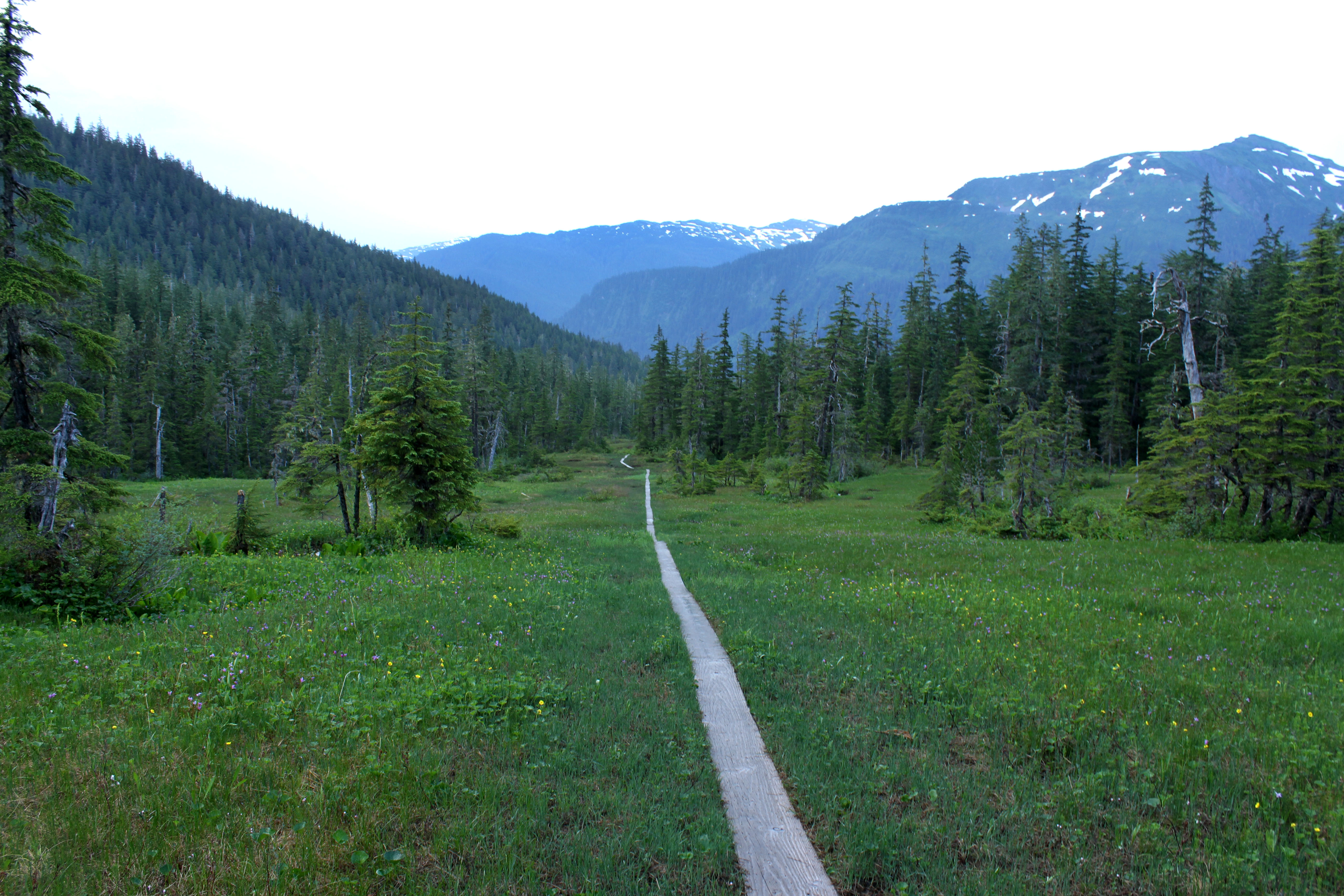 Then steepens into the valley. Boardwalks act as stairs for most the elevation gain.
