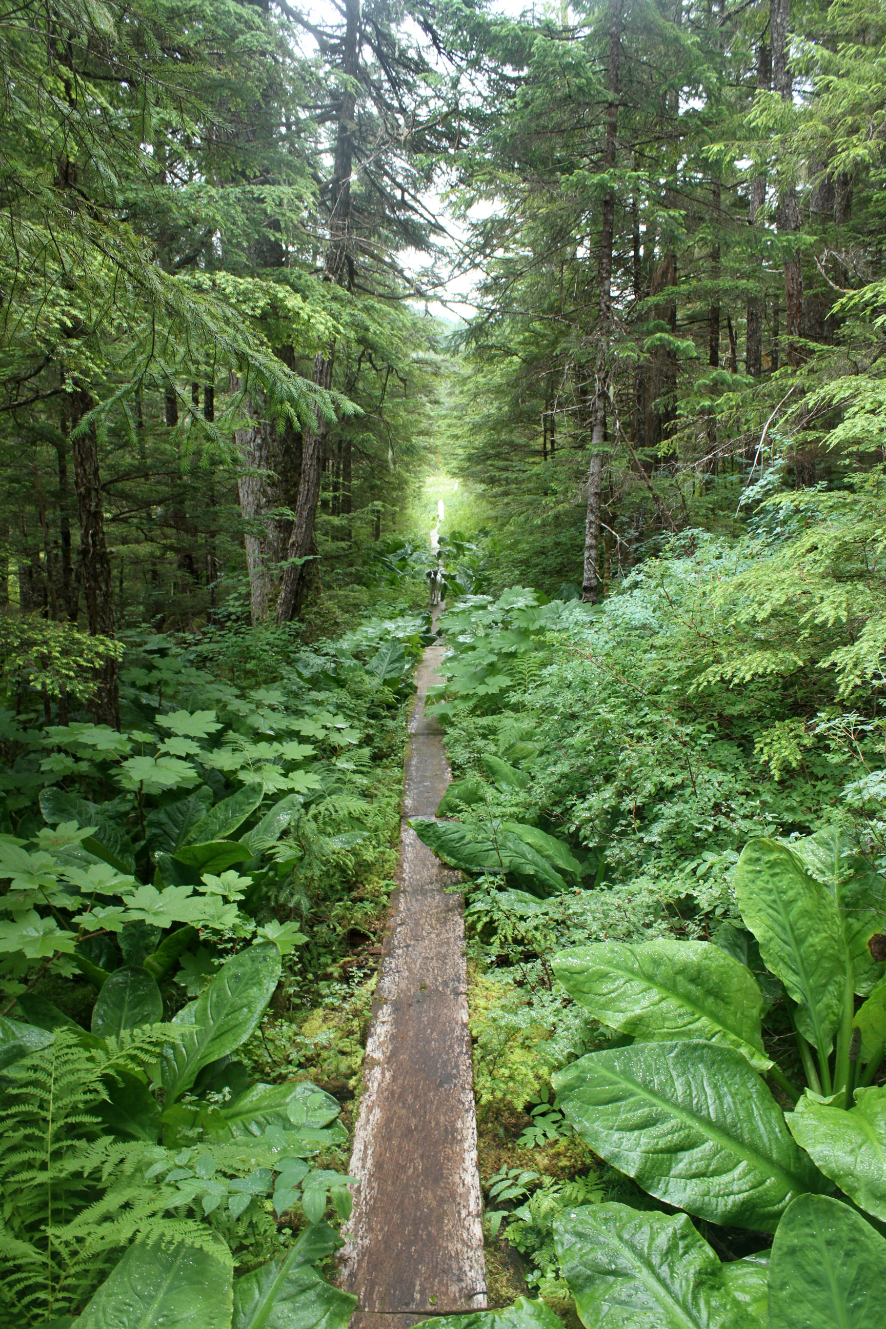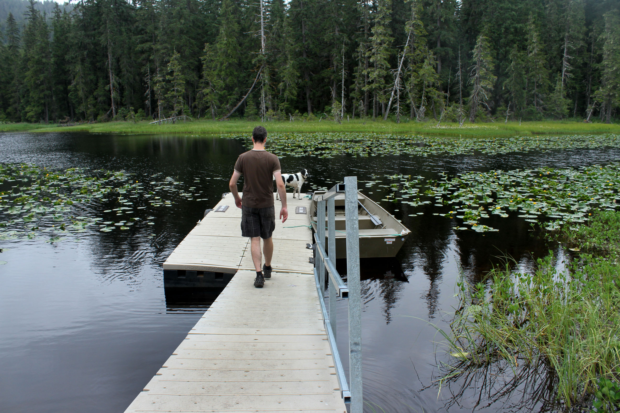 Mostly boardwalk and dirt trial. There are a few muddy spots. The wood can be pretty slick when it’s wet. It ends at a beautiful cabin on the lake, but it is smaller than most other cabins. There is a boat there, so on nice days you can take it out. There is also a nice out house.